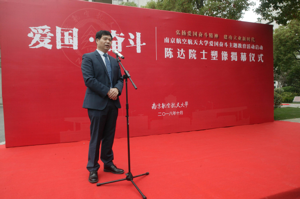 今天,我们在这里隆重举行陈达院士塑像揭幕仪式,表达我们全体南航人对陈达院士的敬意,号召我们全校的教职工、党员干部向陈达同志学习。